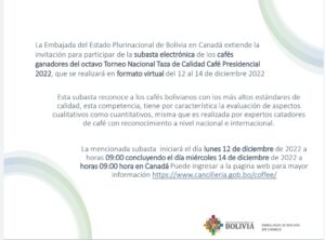 Subasta electrónica de los cafés ganadores del octavo Torneo Nacional Taza de Calidad Café Presidencial 2022 by Administrador · 3 December, 2022